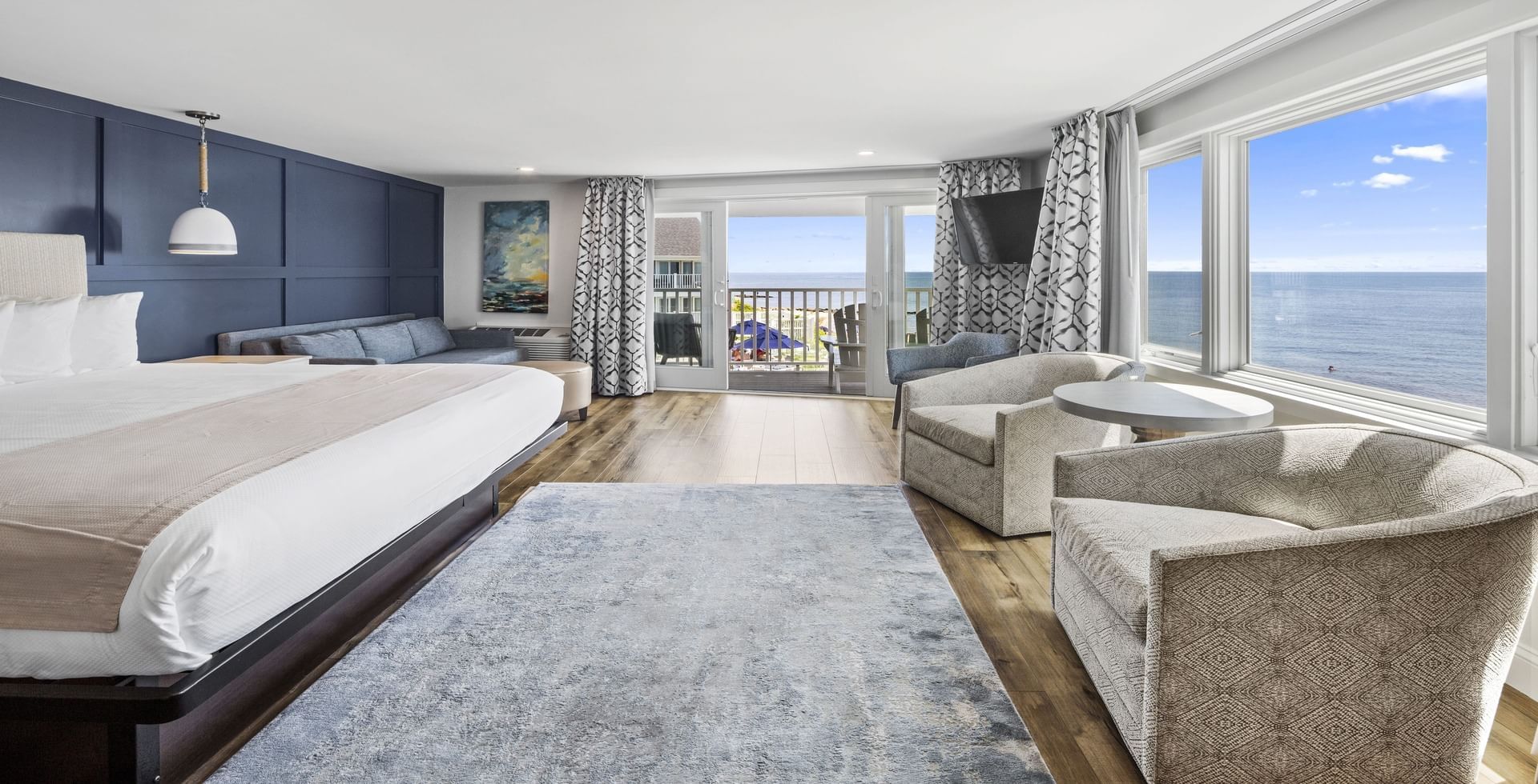 Our newly renovated Ocean Front King Rooms sleep 4, and feature breathtaking picture windows and private decks directly overlooking Nantucket Sound.