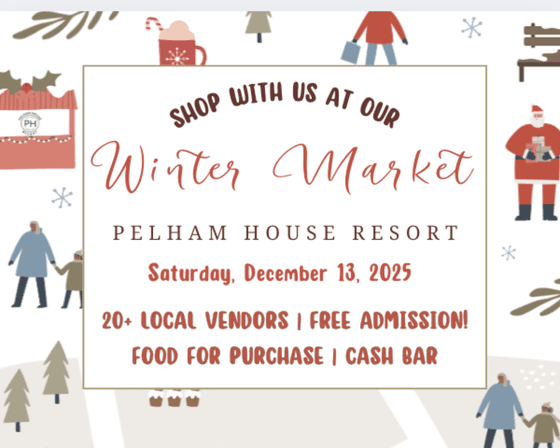 Celebrate the season with us at Pelham House Resort’s Winter Market, featuring 20+ local vendors, festive shopping, food for purchase, a cash bar, and plenty of holiday cheer.